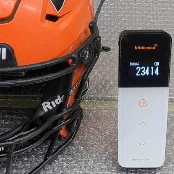 測定参考例としては公衆トイレが11,600、キッチン排水口が862,330、生ごみが92,159 よって、洗浄前のヘルメットは公衆トイレの床の雑菌量と比較して約2倍の雑菌の数値が検出されました(23,414)